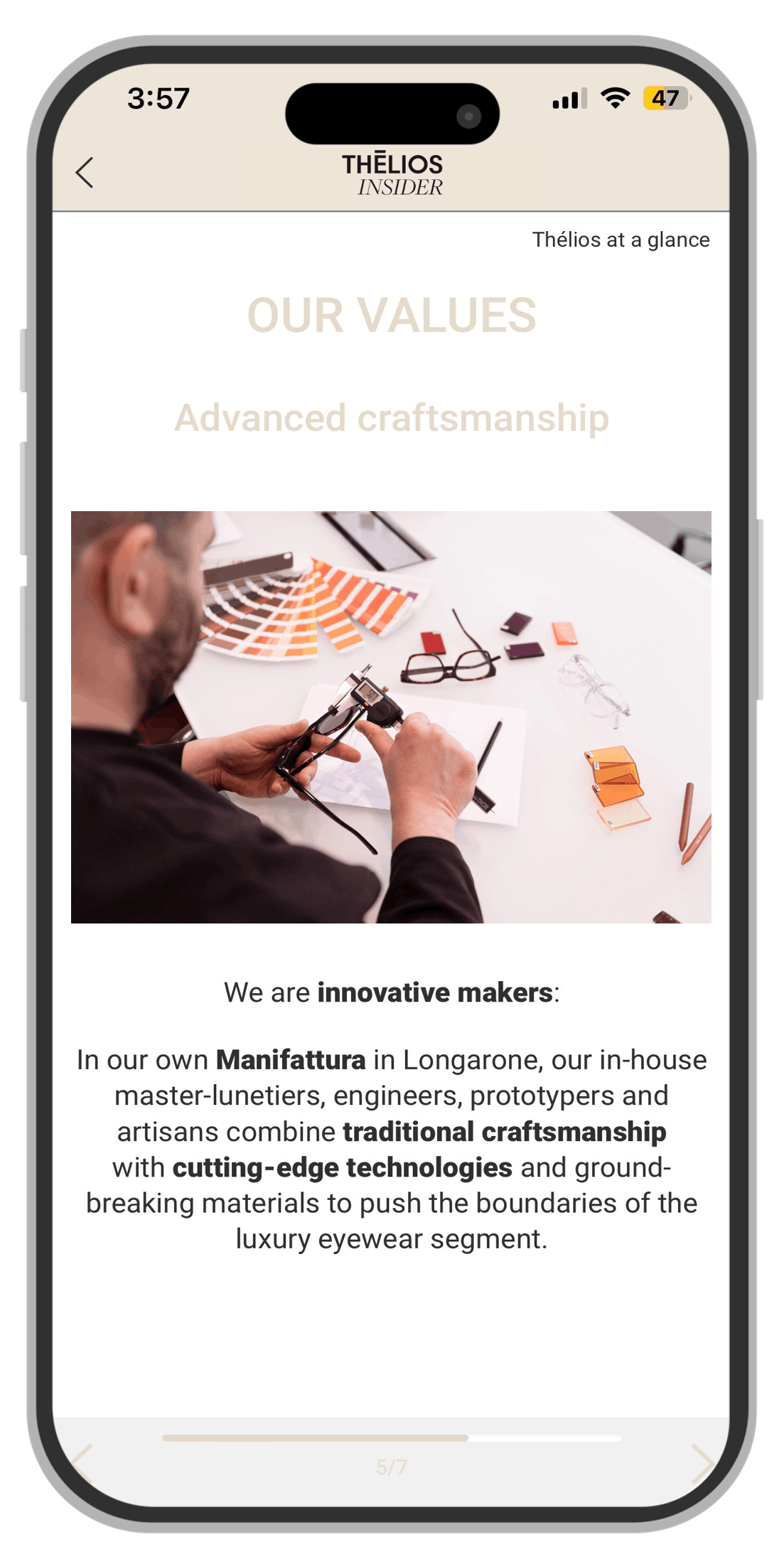 Thélios is pleased to introduce Thélios Insider, its new training app designed to enhance the eyewear experience for opticians and Thélios staff worldwide. Thélios Insider aims to elevate the final consumer’s in-store experience through enhanced storytelling and product knowledge, provided by the optician’s sell staff. The app features a range of training sessions, including onboarding modules for our Maisons, detailed product information, noteworthy celebrity endorsements, and much more. First introduced in the Americas & EMEA region, the Thélios Insider App will continue to expand its offer and reach by 2025. The app is currently available in English, French, Italian, Spanish, German, and Portuguese. Through the Thélios Insider App and in partnership with our commercial partners, we embrace innovation and empower our teams with the ambition to shape a new luxury experience in optical stores.