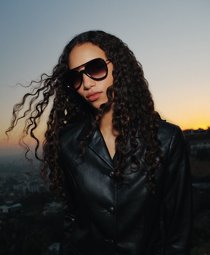 Il sofisticato occhiale da sole “Pickford” mette in risalto i suoi angoli architettonici grazie al filo in titanio attorno alla lente abbinato all'acetato giapponese. I colori si ispirano alla bellezza accattivante dei paesaggi terrestri e marini, mentre i dettagli in filigrana ispirati ai gioielli, evidenziati dalle aste a baionetta, sottolineano il gioco tra materiali.